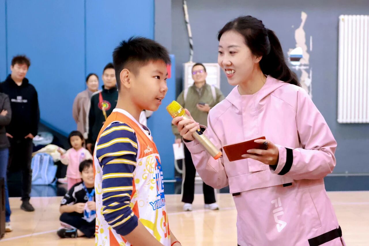 活动设置了丰富多样的互动环节,实现了全民参与、共享欢乐。“罚球线速射”环节中,来自北京第二外国语学院附属小学定福分校、北京市朝阳区安民学校(定福庄校区)、飞悦篮球馆的15名小球员展开激烈角逐,最终5名“神射手”荣获球星签名助威围巾;“篮球知识抢答”考验观众对篮球知识的了解,获胜者赢得签名篮球,收获双重喜悦。中国传媒大学与北京第二外国语学院的友谊赛成为全场焦点,由雷蒙、丘天分别担任临场教练指导战术,双方球员在场上奋力拼搏,场边观众呐喊助威,赛后握手致意的场景,生动诠释了“友谊第一,比赛第二”的体育精神。活动尾声的“球星寄语签名合影”环节,更让幸运观众带着“柿”分珍贵的记忆满载而归。